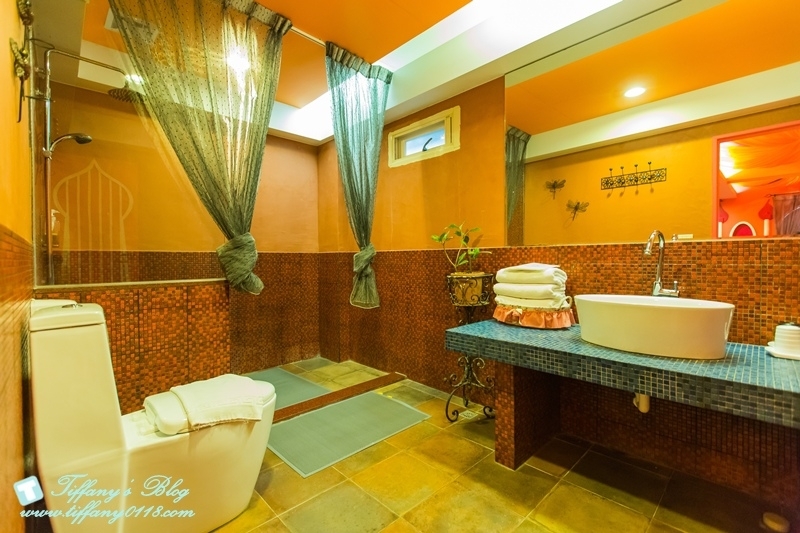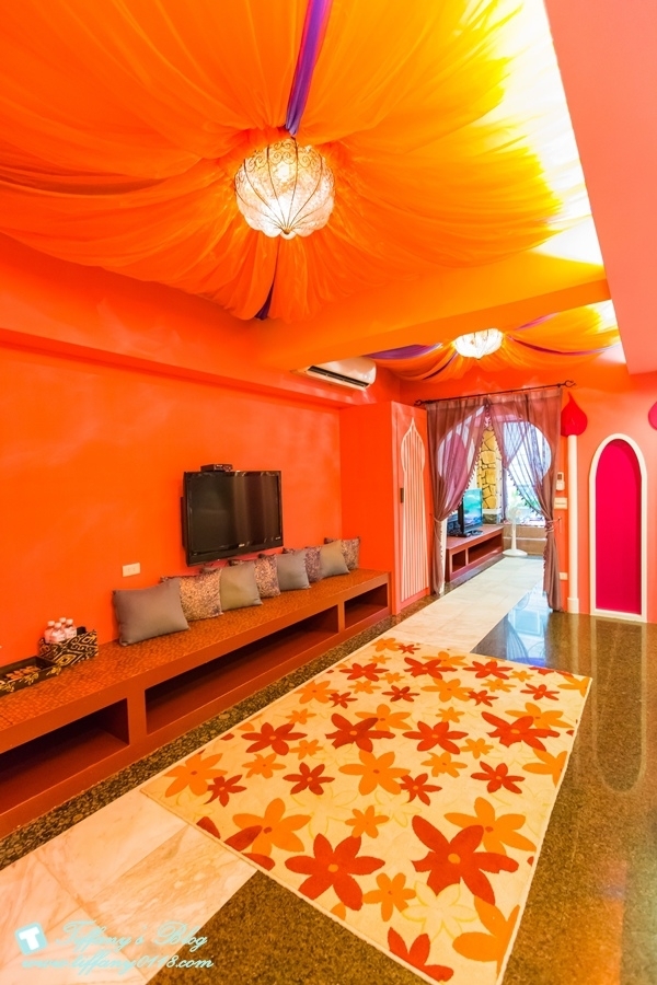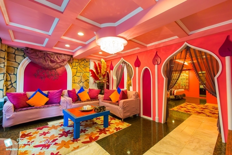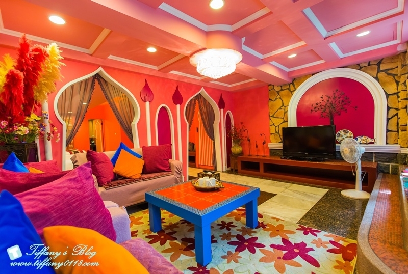 當初會想去住貓腳印就是在官網上看到這間房間的照片,一整個驚為天人XDDDD想說這也太夢幻了吧~~~~~女生看到一定尖叫的阿!!!!!粉色系的配色,中東宮廷風格的裝潢,連沙發都是粉色系的誰受的了>///<