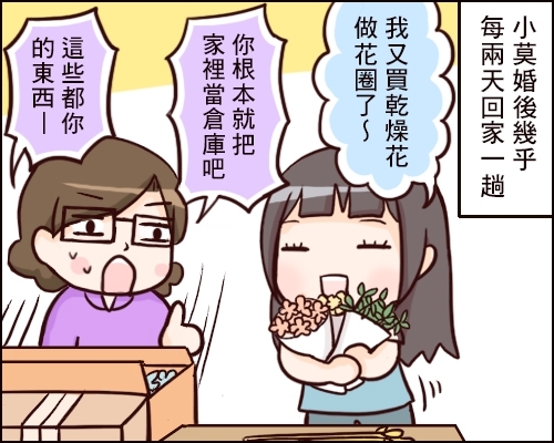 回到家不是來編花圈/花飾要不然就是拿包裹