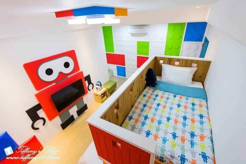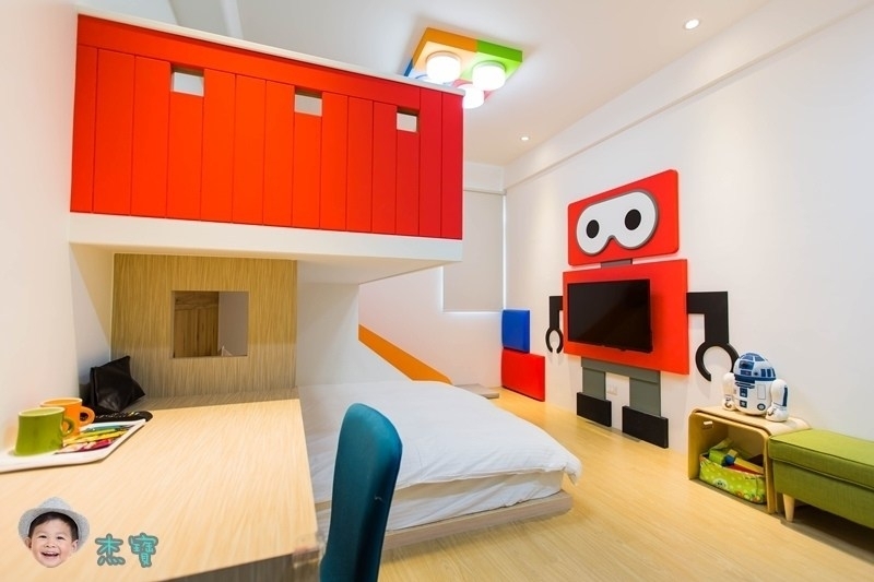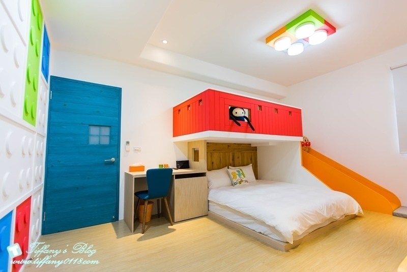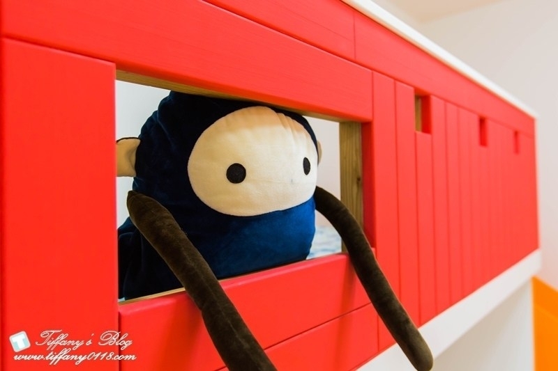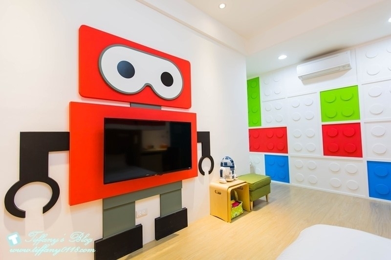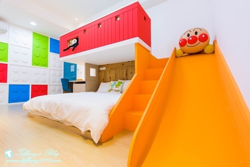 我滿喜歡這間積器人親子房的裝潢,非常有童趣的紅色積器人造型,搭配黃色系的溜滑梯,配色上很亮眼又很吸引人~