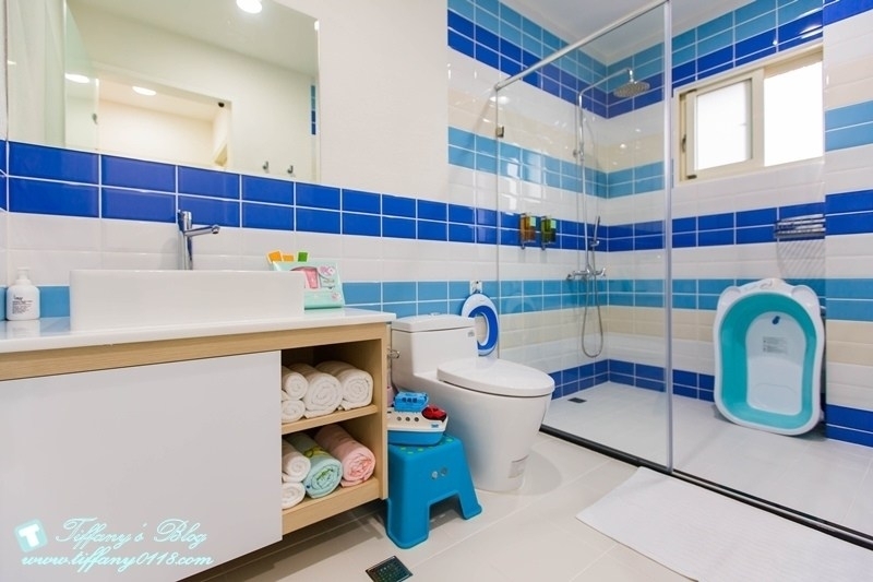 浴室的部分有大浴缸,然後小朋友有專屬澡盆,還有洗澡玩具~讓小朋友洗澡的時候也能玩樂!!另外我覺得很貼心的是幾乎我體驗過的民宿都沒有提供小朋友專屬的馬桶座,所以常常杰寶要上廁所的時候都會比較麻煩,畢竟大人的馬桶對小朋友來說坐起來是不舒服的,一看到童趣樂園有提供小朋友的馬桶座時,真心覺得是大加分ㄝ!!!