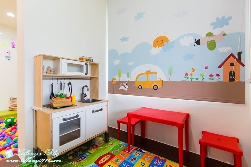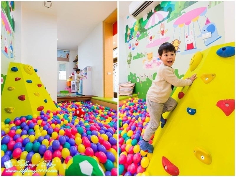 除了大球池跟攀岩以外,還有小女生專屬的廚房玩具,小男生則有小火車可以玩,其他還有很多好玩的玩具以及超多童書,杰寶一整個下午在遊戲區這邊玩到不想進房間ㄝ!!