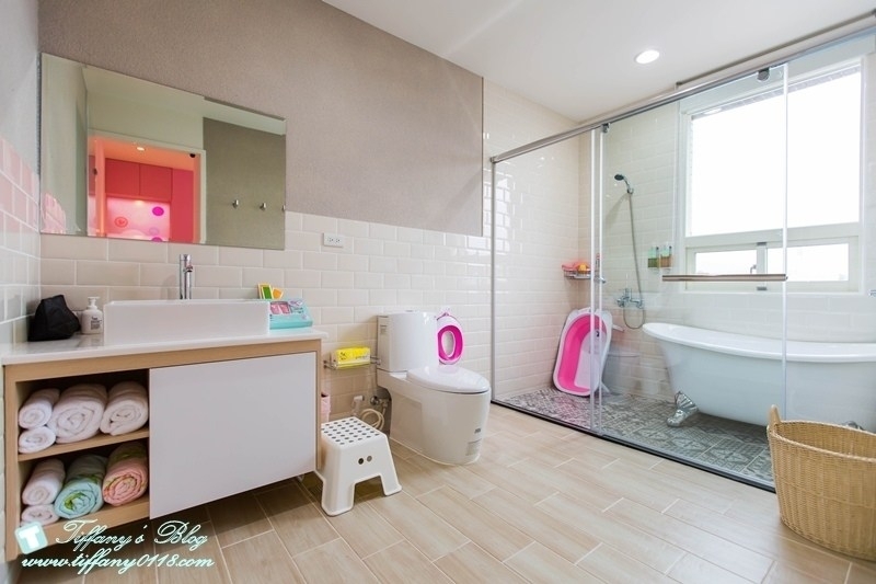浴室的部分…有浴缸可以泡澡,空間也很大,就算爸媽要幫小朋友洗澡也會覺得很舒適