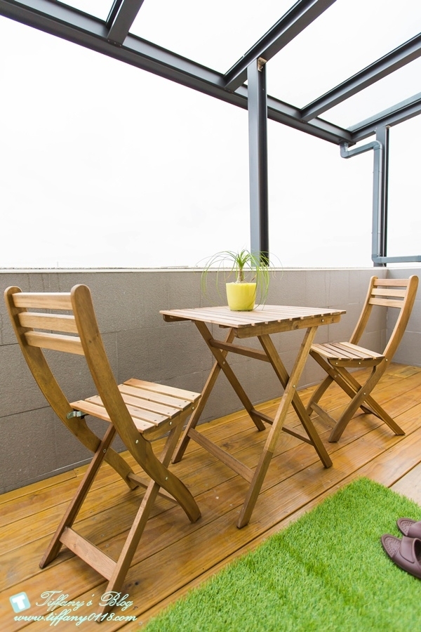 洗手台的部分跟浴室是分開的,然後這間森林大象有一個外戶陽台,空間很大,可以坐在外面乘涼聊天~