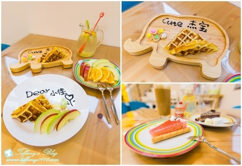 下午茶的部分是手作鬆餅跟蛋糕還有水果,老闆娘還很用心的寫上我跟杰寶的名字ㄝ…一整個很大心^^
