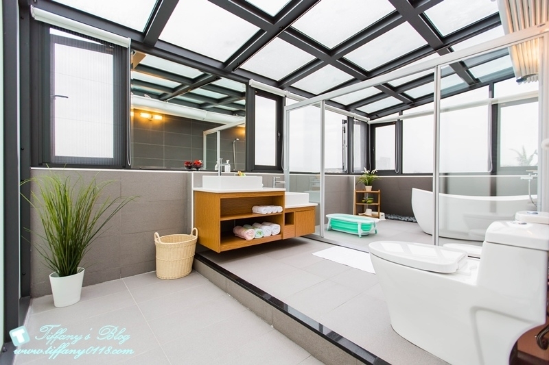 剛才有說這間親子房很特別,就是他的浴室啦~~~浴室是有露天感覺的,但其實上面是有窗戶的,晚上洗澡的話感覺很像在星空下泡澡那樣,很浪漫ㄝ!!!