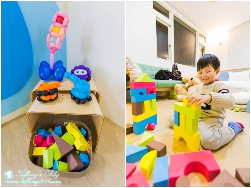房間內除了溜滑梯外,還提供積木玩具,森林大象裡還有一台搖搖木馬,讓小朋友除了溜滑梯以外還有其他的玩具可以玩
