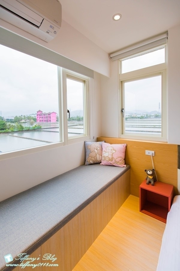 靠窗的地方有一小塊空間可以坐著欣賞窗外