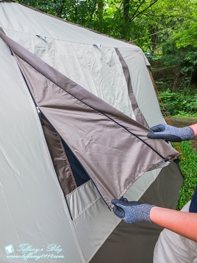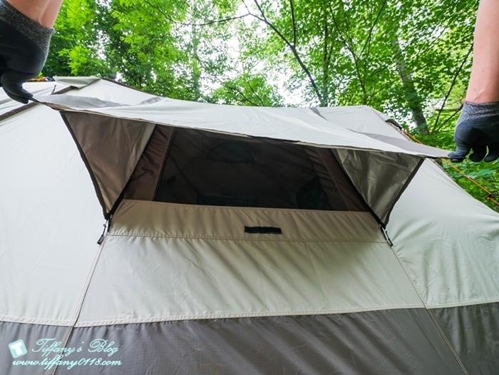 外帳的部分也是有窗戶,更貼心的是側邊窗戶是三角窗設計,可以自備營繩把它拉開,好處是下雨天可以防水而且又通風…是高級帳篷才有的設計喔!