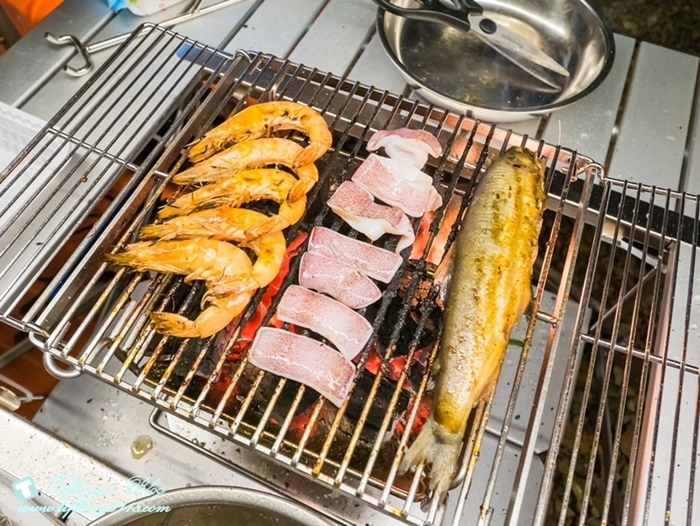當天晚上我們是準備烤肉跟煮一鍋魚湯,前一晚我們就到大賣場去採買…一直到這一刻我才真正看到阿尼到底買了多少露營用的傢伙XDDD烤肉桌~餐桌~冰桶~瓦斯爐