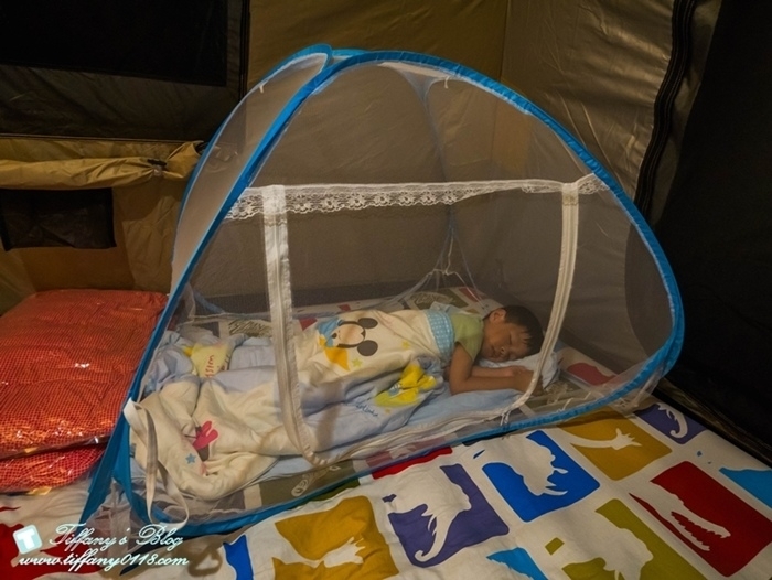 晚上睡覺杰寶就睡在他自己的帳篷裡,因為他很容易被蚊子咬所以我們外宿都會帶他專屬的帳篷,他在家也是睡在這個帳篷裡^^