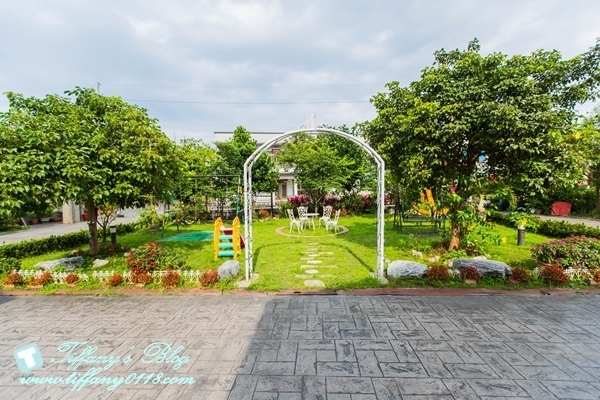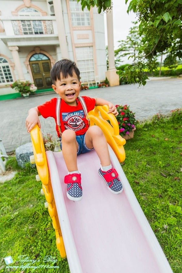 美麗蓮夢露占地很廣闊,前面有一個很大的庭院空間,很有歐式風格的小花園,杰寶在這裡騎車騎的很開心