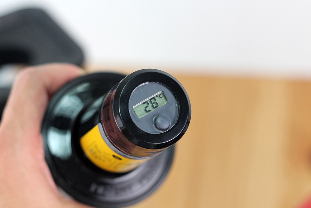 此外,BIANCO 破壁養生調理機有一個專利的溫度攪拌棒,在進行攪拌的過程中還能掌握材料的溫度。按下按鈕即可知道目前杯內的溫度,顯示溫度於攪拌棒頂端的小螢幕上。