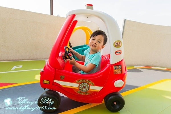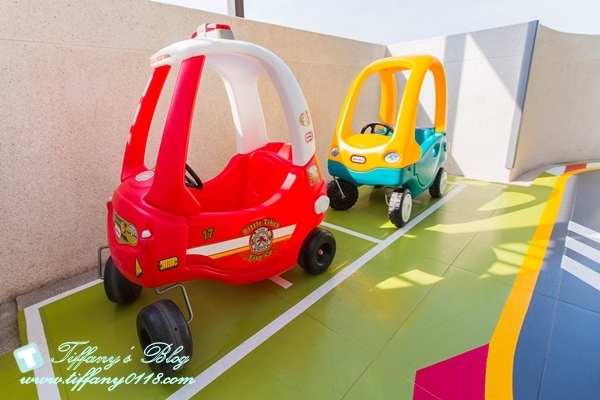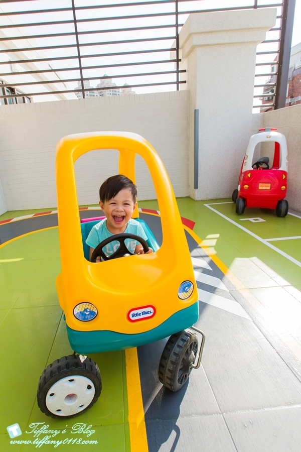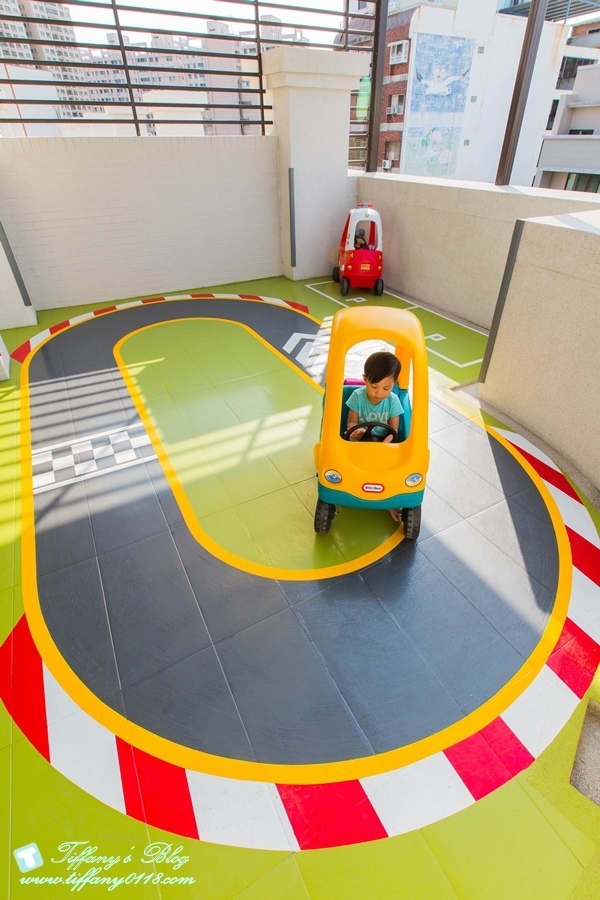 很貼心的提供2台不同顏色的車車,賽車道還滿大的,杰寶非常開心的2台輪流開,而且這個車車是要自己用腳往前走的,可以順便消耗小孩的體力XDDDD