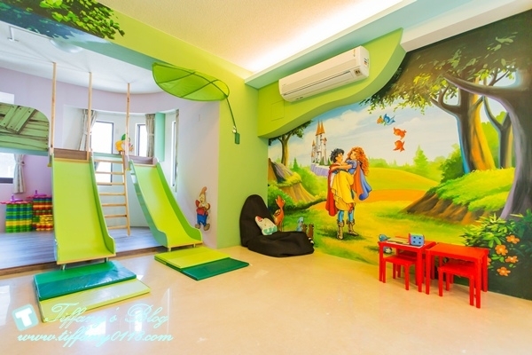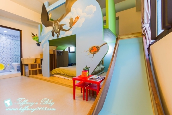 迪利小屋二館的每一間房型都是一個童話故事,完完全全就是為了小孩所設計的,而且我覺得他們非常用心,一般的親子民宿頂多就是有溜滑梯吧,但迪利小屋卻還提供更多你意想不到的驚喜跟親子互動,讓親子民宿真正發揮他的效用,不單只是小孩溜滑梯溜得很開心這樣而已,更能夠藉由一些親子互動的小遊戲中增加親子的感情,我覺得這是非常貼心的構想!!