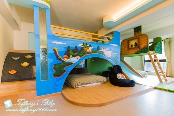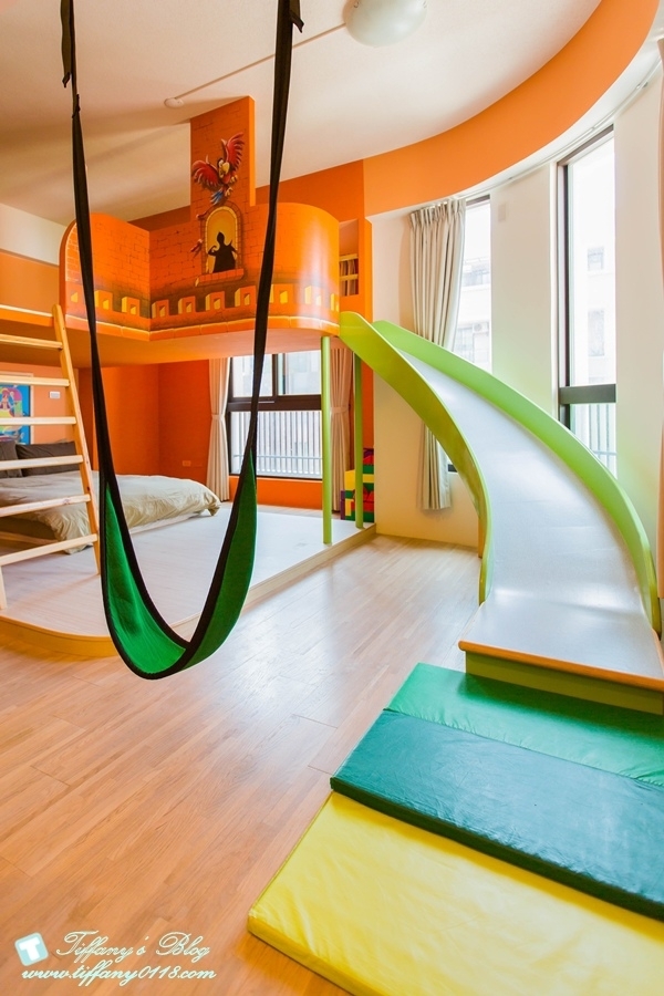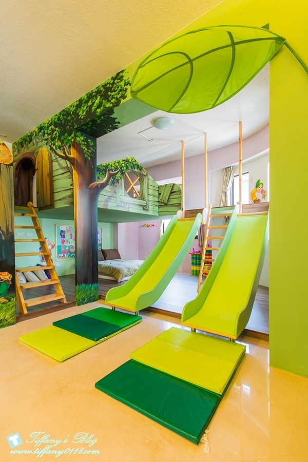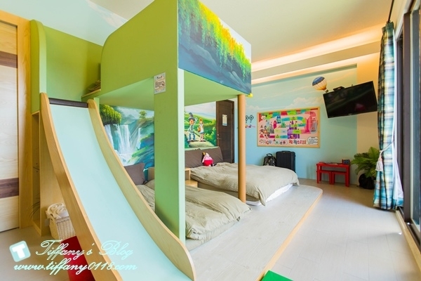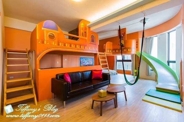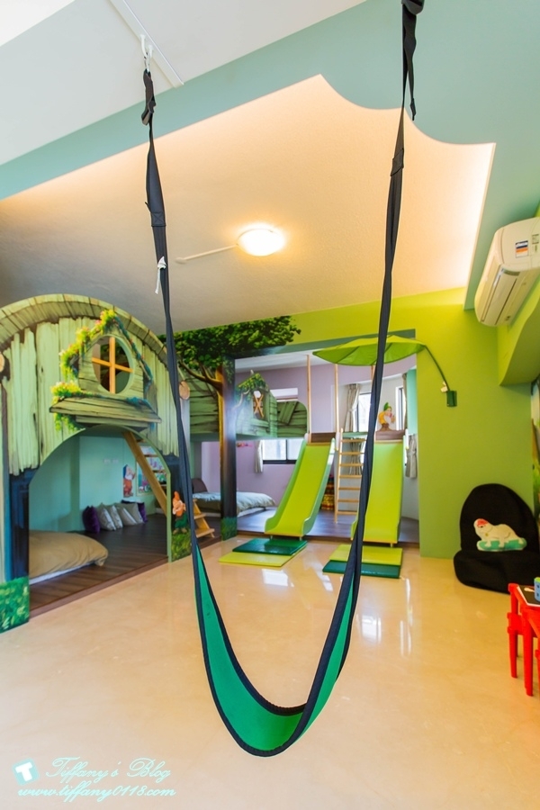 除了溜滑梯外這間房型也有盪鞦韆,感覺小孩真的可以在房間裡面進行冒險遊戲,完全滿足小孩的心啊