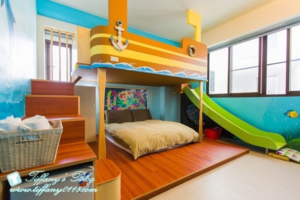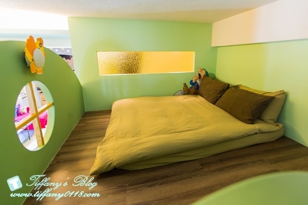 除了一張雙人大床外,溜滑梯算是上下舖的單人床,如果小孩大一點的可以選擇睡在這裡,上面也可以當作小孩自己的私密空間喔!!