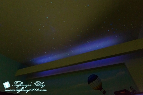 綠野仙蹤房型還有一個小驚喜,就是晚上關燈後的天花板會像星空那樣佈滿星星,讓小孩可以像躺在星空下睡覺的感受