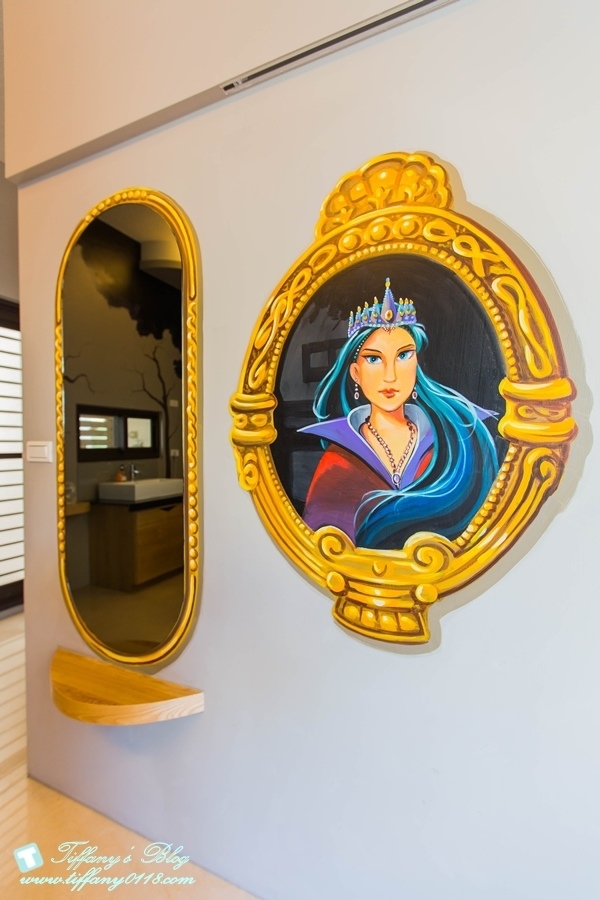 因為空間很大所以分成好幾個區域,除了溜滑梯遊戲區外,還有吧檯區跟客廳區,然後白雪公主裡面的代表性人物在房間裡通通都可以看的到,像是…魔鏡與壞母后XD