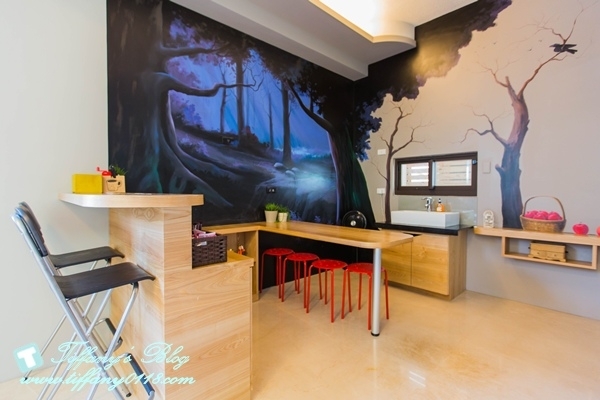 吧檯區的氛圍就是母后~毒蘋果~森林的陰森感,然後一樣有代表白雪公主的壓克力版小夜燈