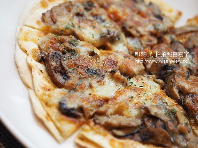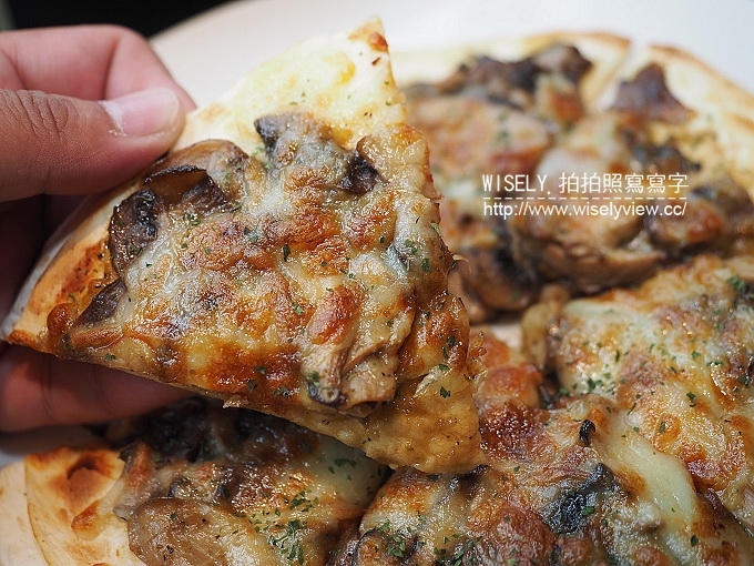 精緻可口的『日式照燒蕈菇薄餅』也是一絕,因為本身為薄片的類型再加上大量的起司在上頭,所以呈現外緣脆內部軟的樣式,而照燒醬和蕈菇味道很搭,讓整體的披薩呈現了鹹甜香脆的滋味,是我個人很喜歡,而且還會想再點的料理。