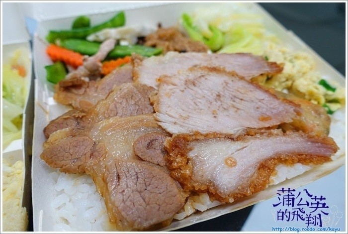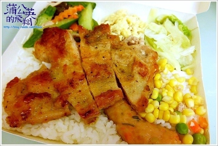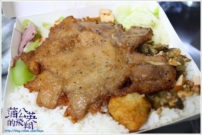 另有滷排骨,所以圖中的是煎/炸排骨囉!粉裹得很薄很薄,所以頂多肉緣處會有稍微酥脆口感,大部分咬到的都是排骨厚實、結實的口感,肉排有先醃過,入味但不會太鹹,調味適中,口味也不錯。