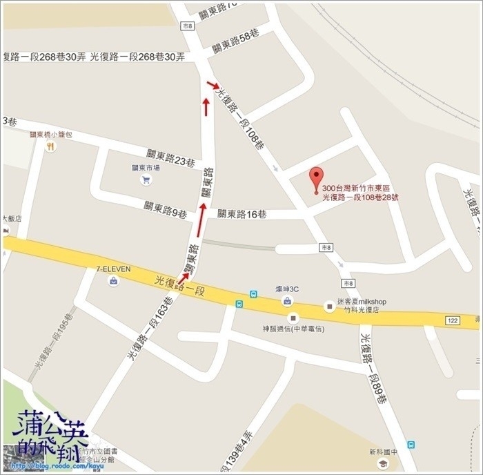 稻禾所在的光復路一段108巷就在可通往金山街的光復路一段89巷對面,但,108巷是單行道,所以還是要先到關東路,經關東市場後右彎迴轉進108巷,才能到稻禾。