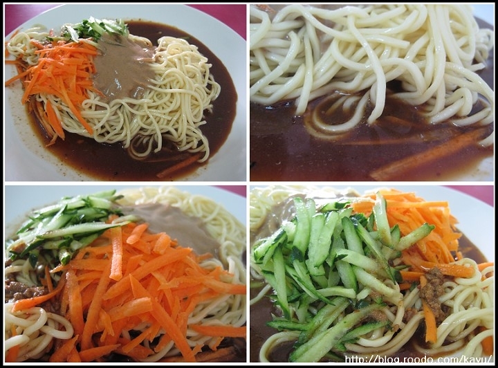 中間的炸醬,除了豆干,另一種東西並不是肉絲,而是很像肉絲的東西,仔細吃是吃得出來,不過如果沒有仔細吃或不專心吃或原本並不知道…很可能沒發覺呢!