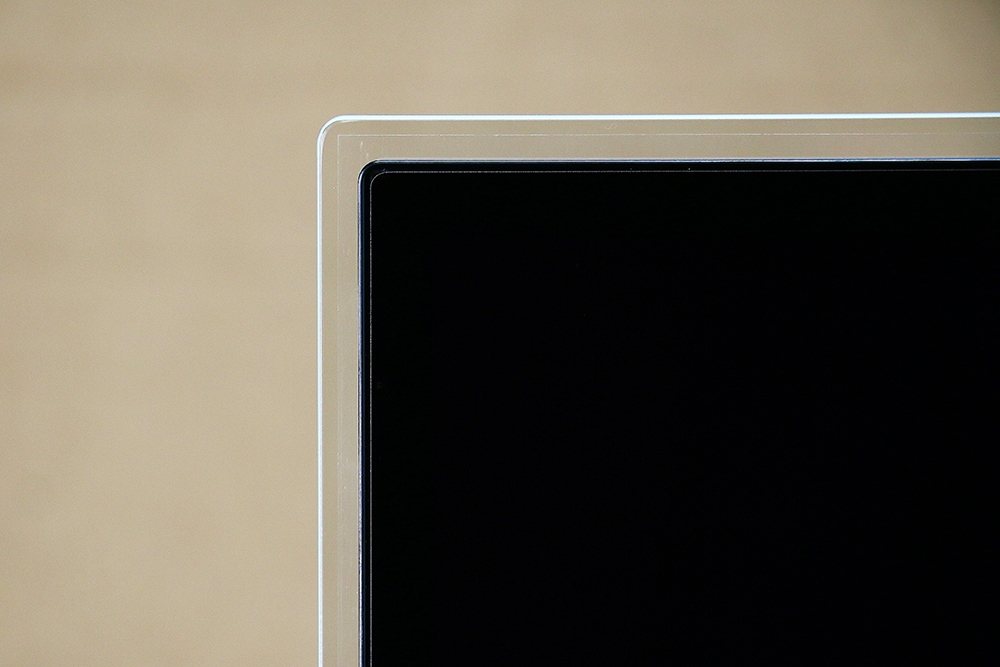 在 65 吋面板外觀的部份,特殊的鏡面顯像設計,讓半透明的玻璃背板透出流線的外觀,在家中能夠很自然融入室內裝潢,以 OLED65E6T 來說,螢幕採用 3.37mm 的超薄 OLED 面板,是直接鑲嵌在透明的玻璃上,光這點的設計就十分讓人驚嘆!另外電視邊框採用 Cinema Screen 設計,讓螢幕最大化的 1 公分超窄邊框,也降低了外框對畫面產生的視覺影響。