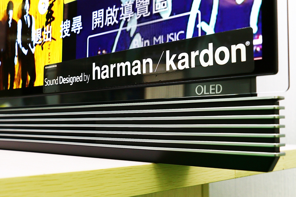 設計師保留高雅的展台,前置 Sound Bar 將喇叭隱藏於底部支架,在音效方面,LG 與業界頂尖的高級音響品牌 harman/kardon 合作,有很棒的聲效體驗,音色的清晰度和音訊處理表現比一般的薄型電視有層次,搭配 4K 畫質更能大幅提昇震撼場面的音效感受!