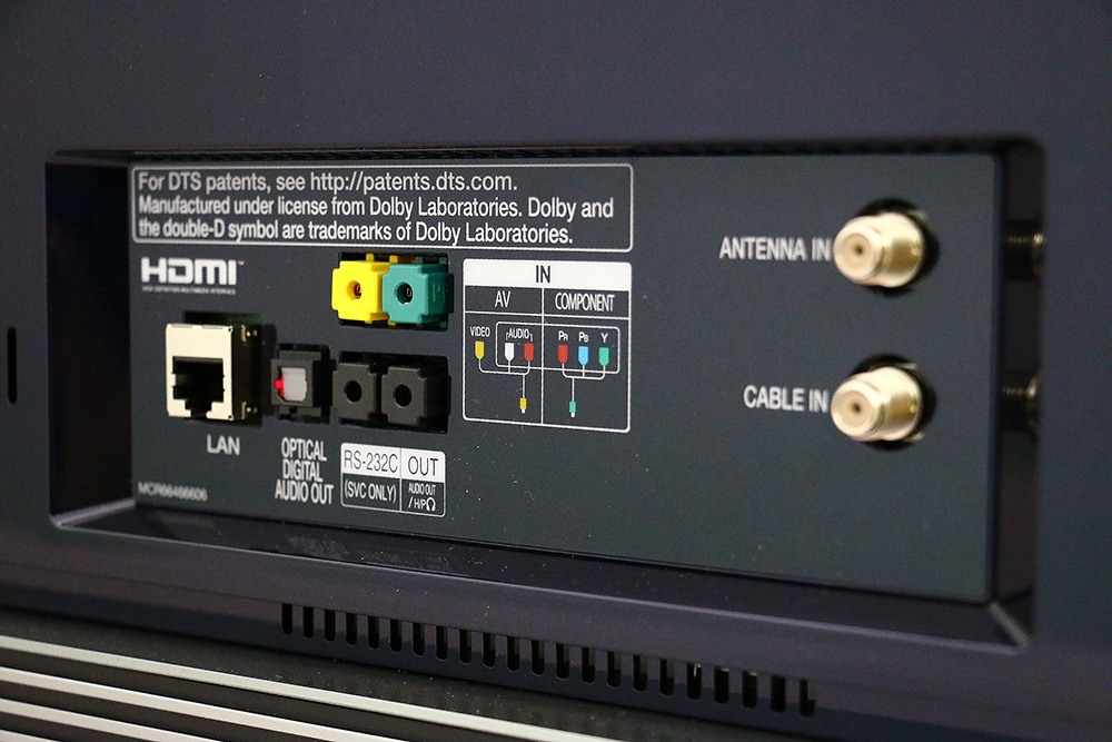 電視後方介面則提供了 1 組色差輸入端子、2 組 RF 輸入(天線/有線)、1 組複合影音輸入(AV In 端子)、1 組光纖數位音訊輸出、1 組耳機輸出、RJ45 網路介面,當然 OLED65E6T 內建了 Wi-Fi 無線網卡,全部漂亮整合在背面。