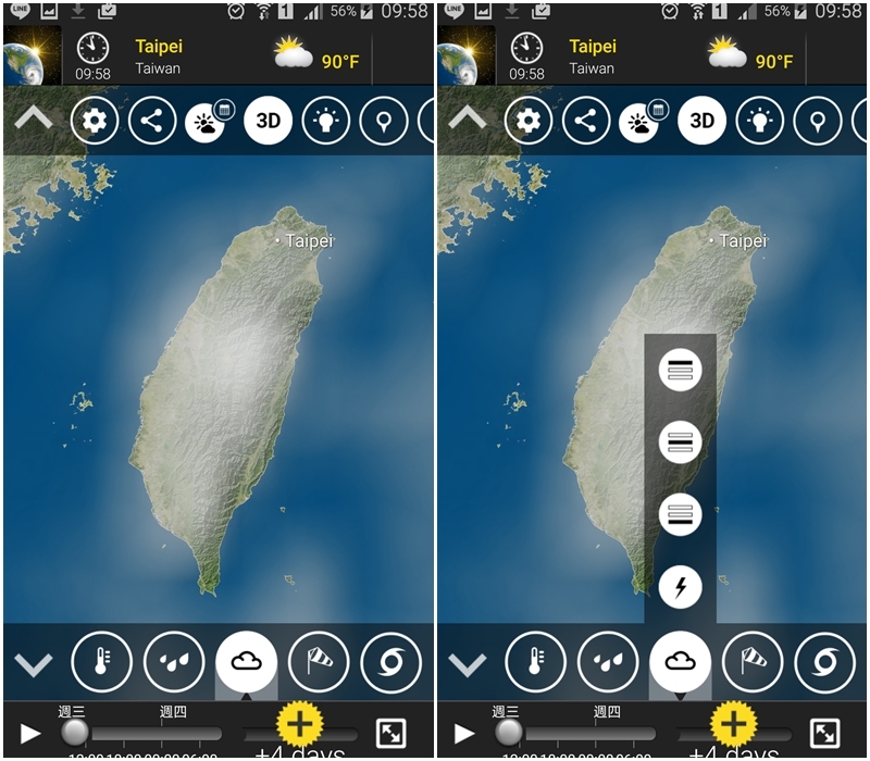 雲層的概狀,而且還可以選擇你要看或是拿掉上、中、下層的雲層,雲層一多時,上面還會有閃電,真的很專業啊!