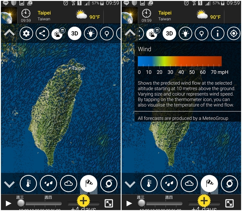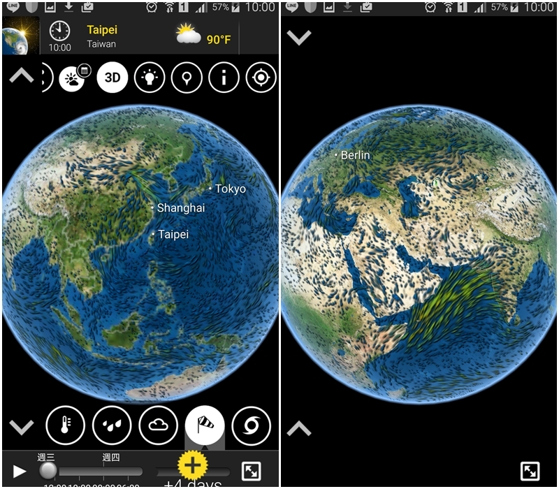 這是一款可以即時看到全球的天氣預報軟體,除了我們常查詢的溫度或是下雨狀況外,這一套還可以看雲層、風速甚至是颱風目前的狀態。雖然是英文版,但基本上很容易就懂(不懂 google 一下嘛)