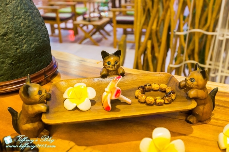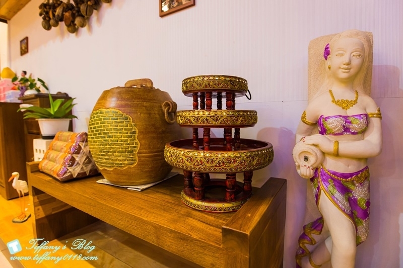 餐廳裡有非常多東南亞特色的裝飾品,桌椅全都是木製的,聽說很多家具都是從國外直接引進,老闆堅持原汁原味,這一點也運用在料理上面….