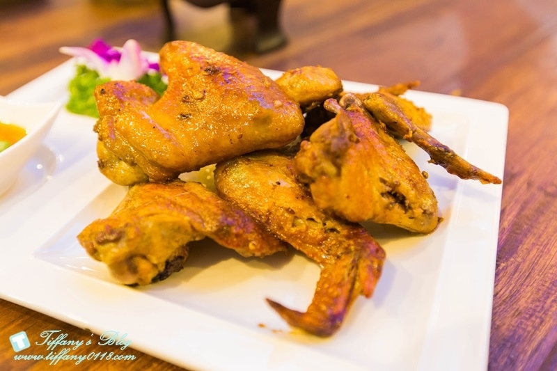 我之前在泰國沒有吃過類似的料理,不過因為我本身吃很重口味,所以對這道烤雞翅還滿愛的,加上它表皮烤的夠酥脆,咬下去會有”喀滋”的聲音!!可以搭配附的沾醬,不過我覺得單吃就滿有味道的了…