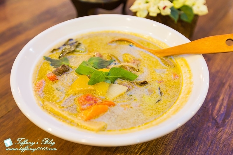 剛才有說我是不吃咖哩的人,但這道綠咖哩我還是有嚐一點啦…綠咖哩是去泰國必吃的道地料理,像我的好姊妹就是每次去泰國吃飯幾乎每餐必點,我自己的感覺是沒有很辣,但有滿重的香料味