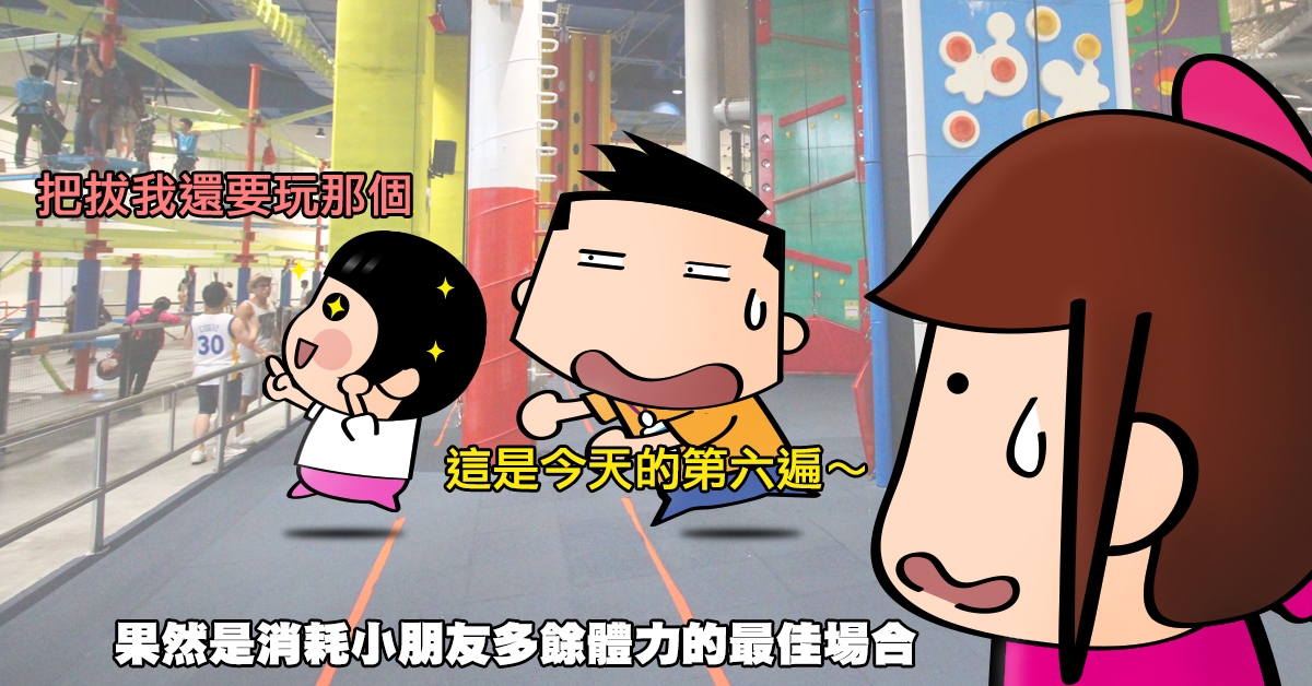 沒有什麼比這種「攀岩走壁動能特區」還來得動態的設施,因為很多都要自己來啦!喜歡極限運動的朋友一定要來嘗試,不管大人小孩都玩得超開懷,而且安全措施都做得十分嚴謹,也有專業的陪同老師,所以放心得去體驗吧!