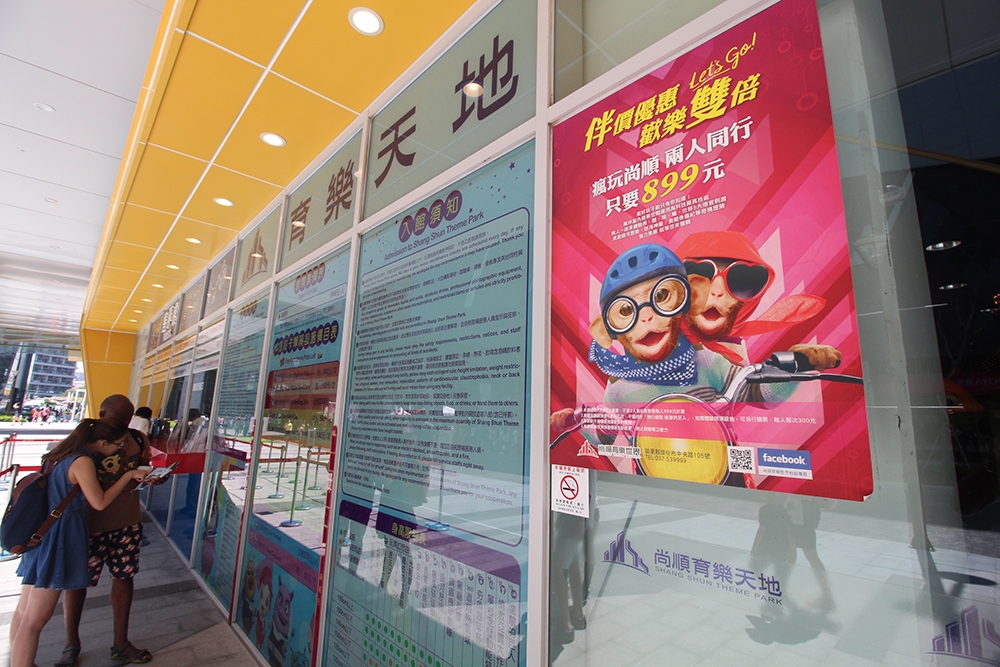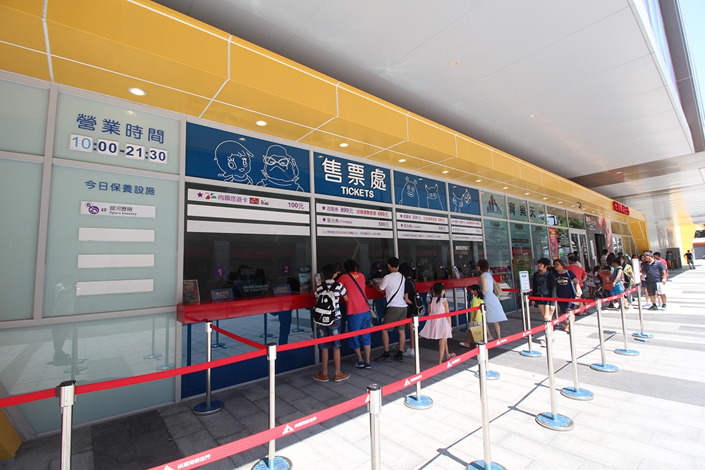 不過今天最主要目的就是來去尚順育樂天地玩給他爽啦!聽同事說是「台灣版的環球影城」,進去看到一樓的售票處,就排隊購票吧,這裡可以一票玩到底唷!