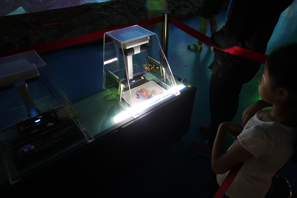 畫好之後,工作人員就會幫你做掃描的動作,不一會兒「你的魚」就會在畫面上出現囉!