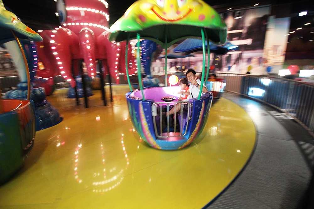 這絕對是媽媽和女兒的夢想,也是她第一次坐旋轉木馬,隨著音樂上下擺動又跟著大家一起旋轉,感覺好夢幻又好可愛唷!阿公、阿嬤也一直幫她拍照,因為實在是太開心了~