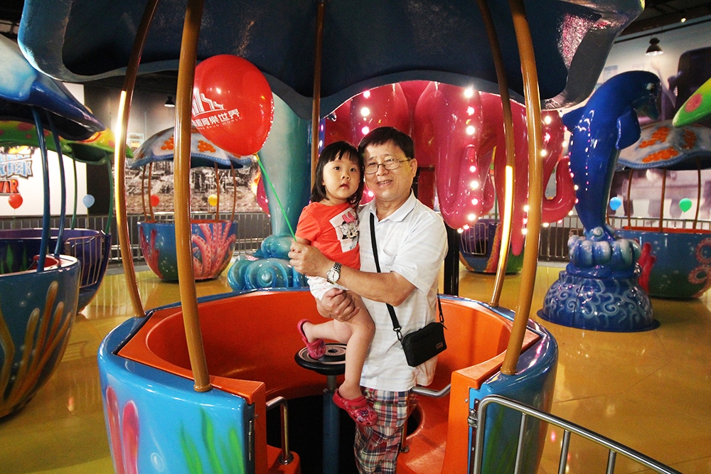 阿公和孫女一起玩「夯魚咖啡杯」真的很開心,還好我們家的小寶貝身高有夠了,不過還是需要大人陪同,想想小時候的自己哪有這麼多好玩的,現在的小朋友太幸福啦!