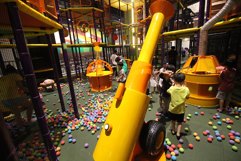大人進去大概也會玩得很開心,居然可以裝填泡綿球進行發射攻擊,反正打到也不會痛,讓很多小朋友真的是大解放了,笑到不行之外,居然還默默組隊行動了起來,很適合培養領導和團體活動,玩到都忘記幾點該回家了,爸媽後來都陸續來抓人(哈)