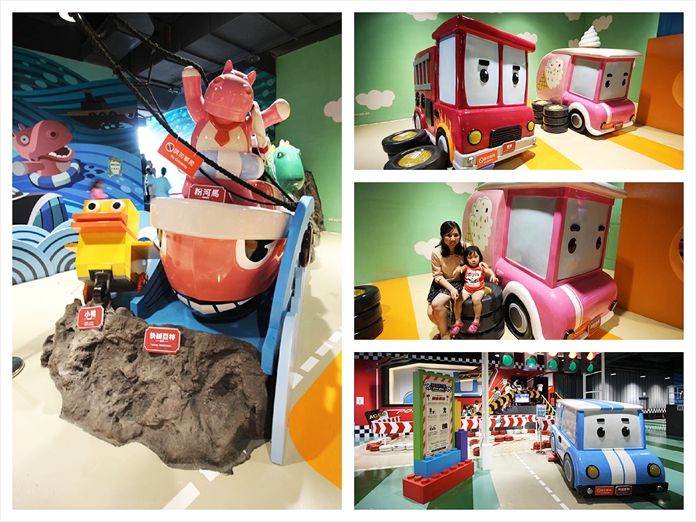 拿著可愛的玩具槍射擊螢幕上的氣球和解開各項任務,車開到一個關卡就會停下來,爸媽可以和小朋友一起比賽唷!現在小朋友還小還可以慘電他們,等他們再大一點,把拔大概會輸得很慘。最後還會一起合照留影做紀念,真的是可愛又有趣的設施。
