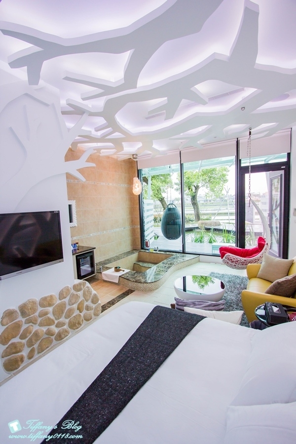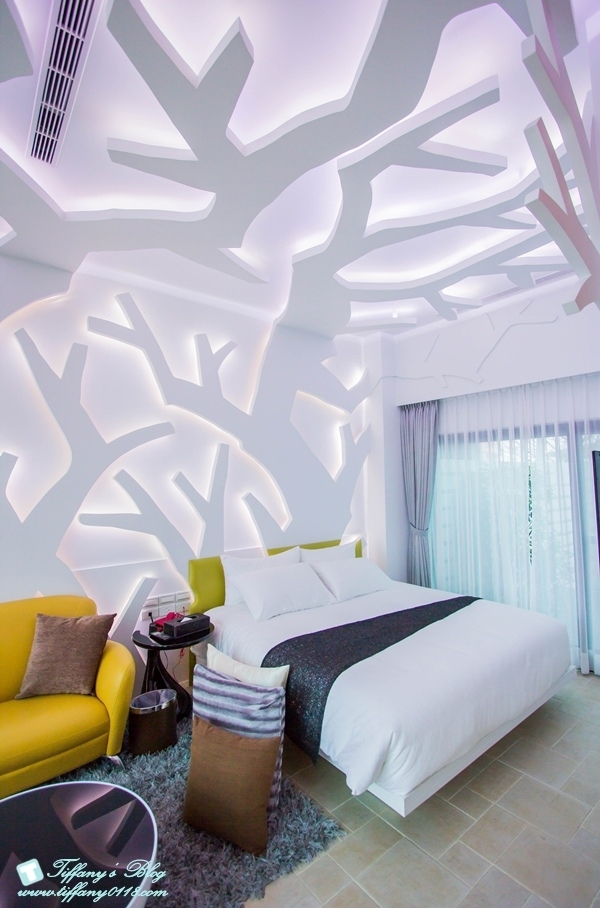 同樣是以白色為基底調性挪威森林,設計感是由地上延伸到天空的樹型裝飾手法,超特別的異想空間最適合情侶來入住啦^^
