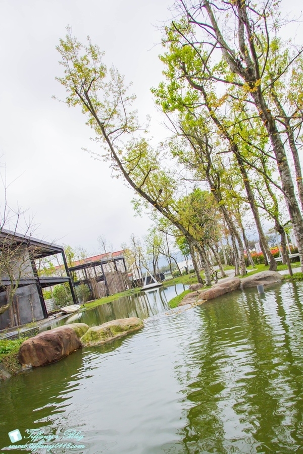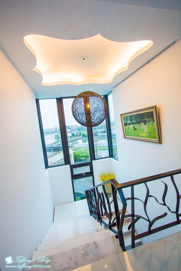 第一眼看到水岸楓林的外觀,一整棟佇立在水畔旁的純白色系現代建築,我馬上發出”哇~~~”的驚嘆聲!!雖然到宜蘭的當天飄著細雨,但是絲毫不減水岸楓林帶給我的第一印象–>自由