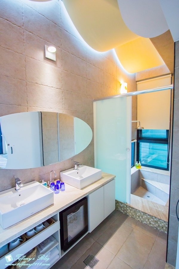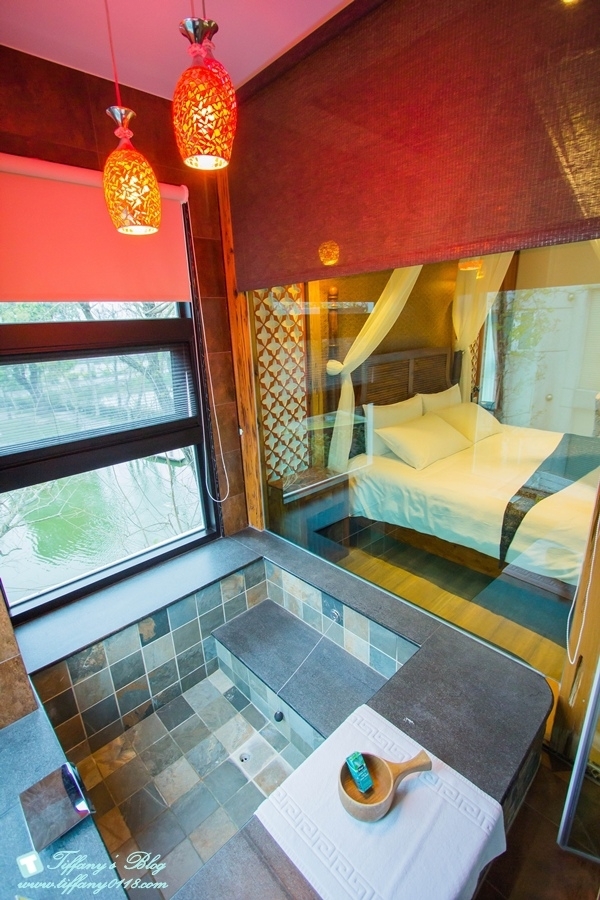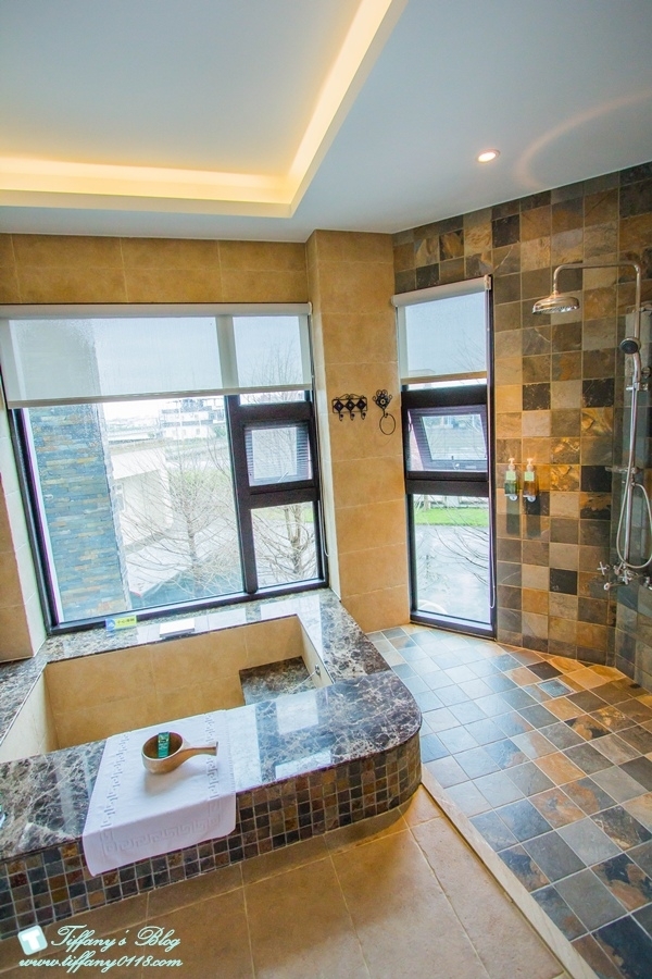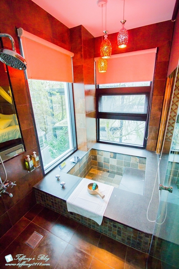 民宿的浴室是我很注重的一個地方,因為我在家很少泡澡….所以我覺得有浴缸的房間對我來說是種放鬆跟享受,這間香榭峇里不但有浴缸,而且還是像泡溫泉的那種大池子ㄝ~~可以一邊泡澡一邊欣賞窗外的美景,這樣的雙重享受怎麼能不叫人傾心呢!!