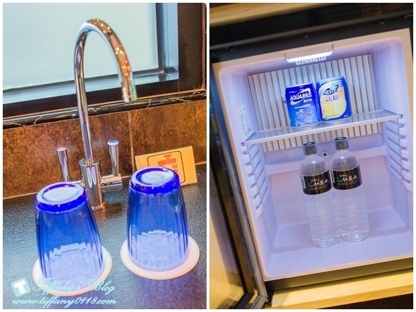 老實說每次帶著小王子外宿時,最大的問題就是”泡奶”因為早晚小王子都要喝ㄋㄟㄋㄟ,所以冷熱水對我們來說很重要!!大部分的民宿都是提供熱水壺自己燒水,或是在大廳擺設飲水機供使用,但是在水岸楓林…卻是”每一間房間都有逆滲透”!!!!!直接打開就可以飲用的冷熱水~貼心程度200%,另外還有小冰箱提供飲料與冰水,更特別的是冰箱放置的位置是在浴室喔^^