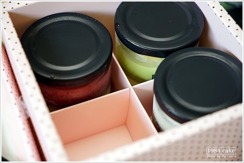1984 cake不但在包裝上用心,在製作甜點上也別出心裁,層層堆疊的夢幻甜品不但製程厚工,加上嚴選的自然素材讓人更可以同時兼顧天然與美味!大口尤其喜歡「 藍莓風情 」、「 美荔佳人 」、「 檸檬乳酪」這三種口味,不但非常適合夏天享用,且香甜不膩、清新爽口的風味讓人一吃就愛上!另外三種口味也都有不錯的表現,喜愛的朋友記得每種口味都嚐嚐看,或許也能找到心目中喜愛的罐子蛋糕唷!推薦給大家~