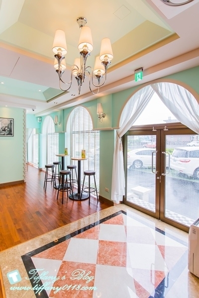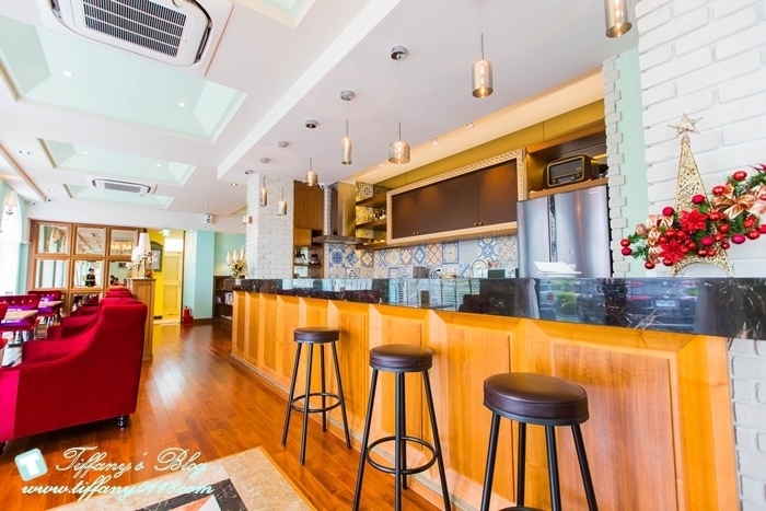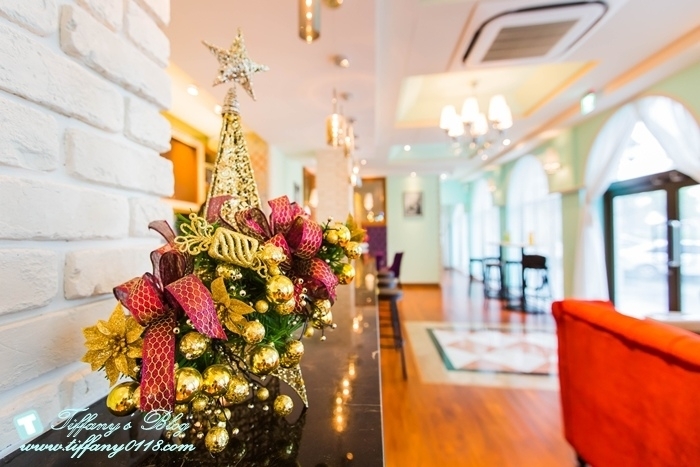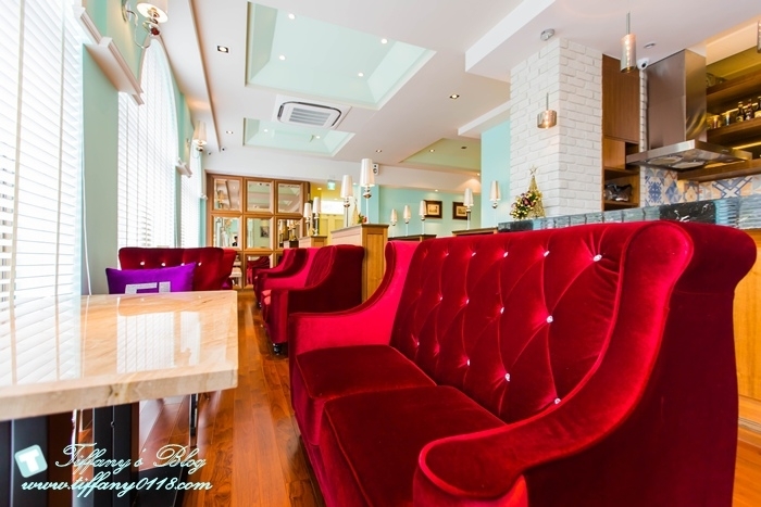 紅色絨布沙發更顯質感,非常歐式的佈置裝潢,跟外觀純白色系形成強烈對比,也更加亮眼~~難怪好多人慕名而來!!