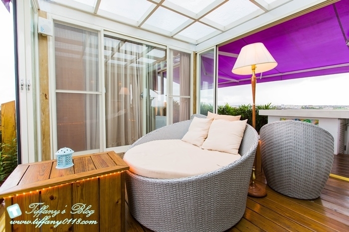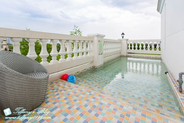 狹長型的走道直通外互陽台,打開之後發現是一個戶外戲水池,夏天的時候可以讓小朋友在這裡玩水,水的深度不高所以家長可以一起陪同在這裡邊玩水邊欣賞美景