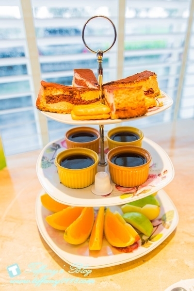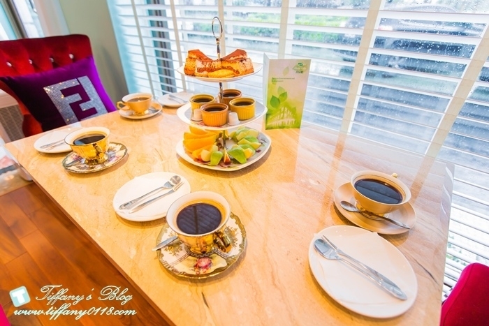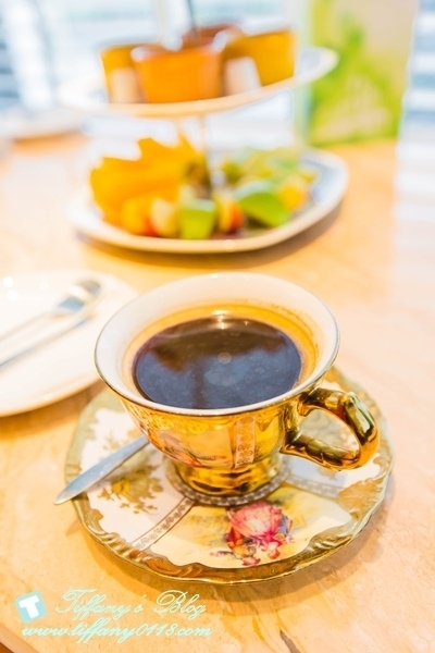 下午茶非常豐富且精緻,有蛋糕~甜點及水果等,配上一杯咖啡真的像置身歐洲般享受